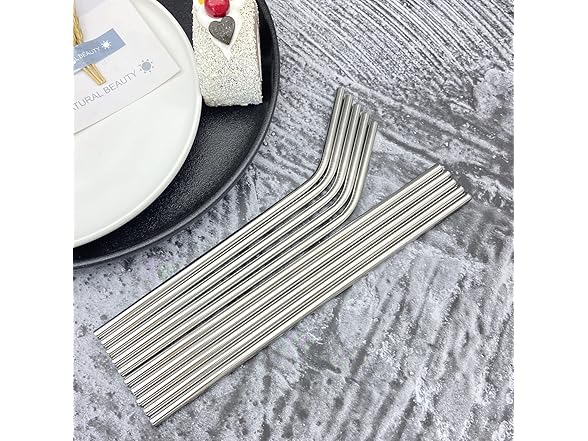 Reusable Bent Metal Straw 50Pack in Bulk,215mm Stainless Steel Straws for Drinks.Drinking Straws Wholesale for 30 oz & 20 oz Tumblers Yeti Water Bottle (8.5" - Silver, 50pcs - Bent)