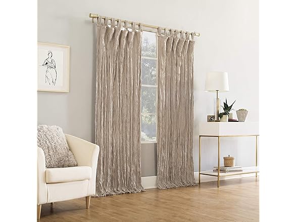 No. 918 Odelia Distressed Velvet Semi-Sheer Tab Top Curtain Panel, 50" x 84", Stone