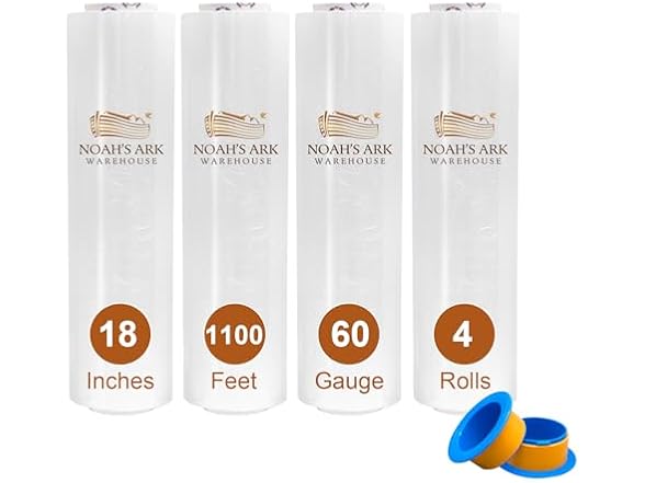 18 Inch x 1100ft Stretch Wrap, Industrial Strength Puncture Resistant for Home Retail Warehouse Packing Moving Shipping, 60 Gauge, 4 Pack, Clear, Wrap Holder Included (4 Pack)