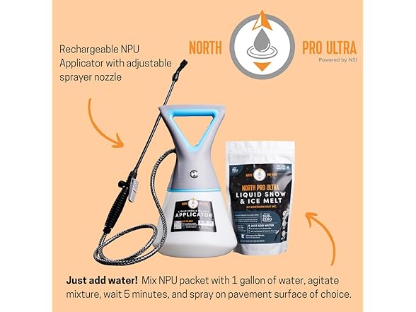 - JUST ADD WATER: Fill the North Pro Ultra sprayer or your battery-operated or pressurized sprayer of choice with 1 gallon of water. Pour the North Pro Ultra packet into the 1 gallon of water. Gently agitate the mixture to ensure the product is dispersed & diluted evenly. Allow 5 minutes for the product to mix. Spray evenly on pavement or surface of choice.