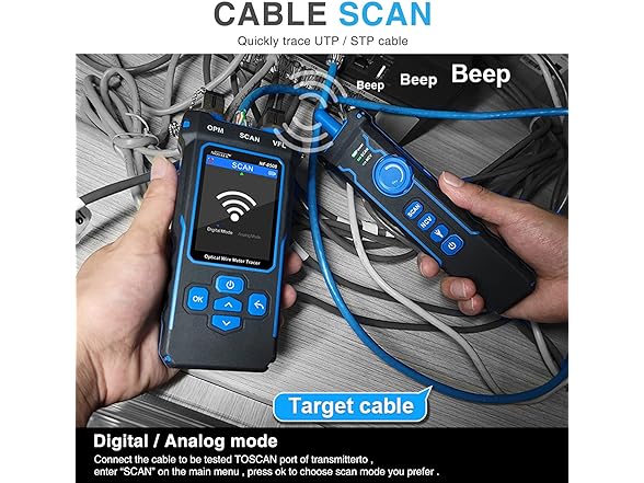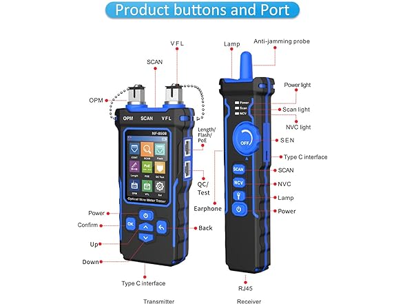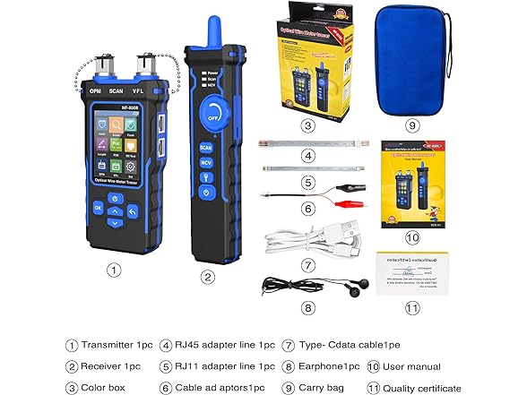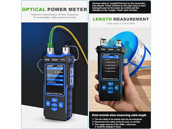 NOYAFA Network Cable Tester with Optical Power Meter VFL, CAT5 CAT6 Cable Toner Ethernet Cable Tester, RJ45 Network Tester for Telephone, Ethernet, Video, PoE Ethernet Tester Wire Tracer Fiber Tester