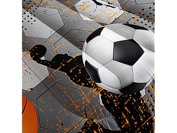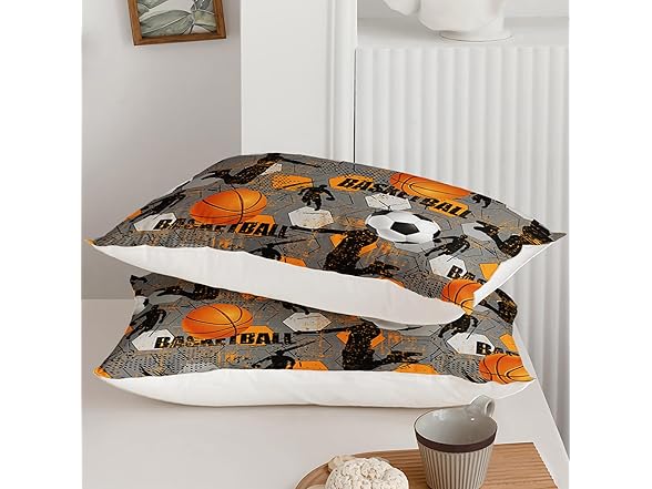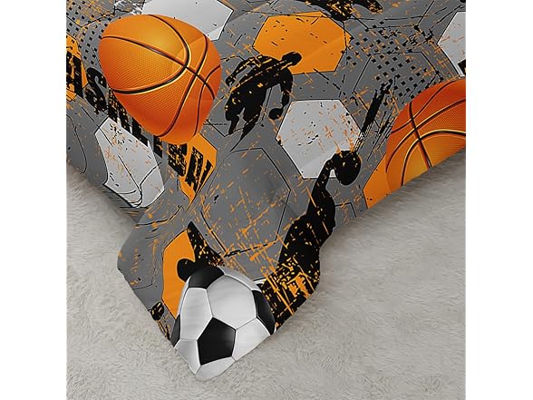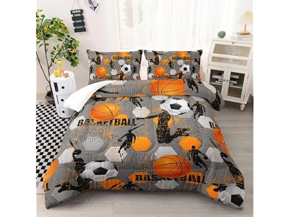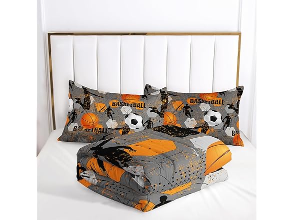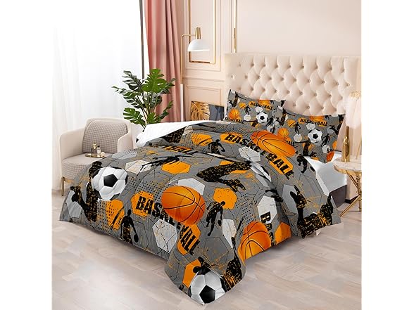Ntlfup Basketball Comforter Set for Boys - 3-Piece Soft Microfiber Gray Orange Multi-Color Slam Dunk Sports Bedding for Kids, Queen Size, 3PCS, 1 Comforter Set+2 Pillowcases