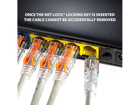 NTW 50' Lockable CAT6 Patented net-Lock RJ45 Ethernet Network Patch Cable (UTP), Snagless, Light Gray (NL-U6K-050LG)