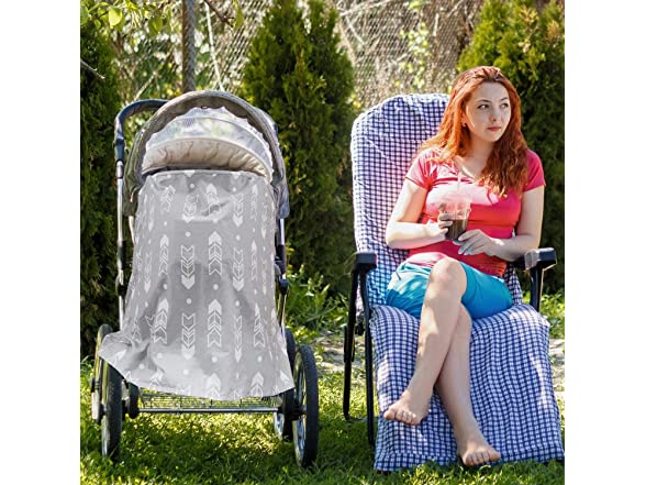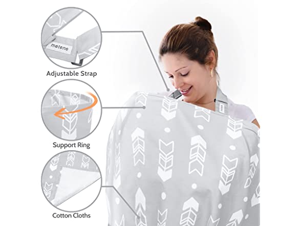 Metene Nursing Cover for Breastfeeding, Breastfeeding Cover with Sewn in Burp Cloths, Breathable Lightweight Soft Feeding Covers with Adjustable Neck Strap for Nursing Mom, 100% Cotton