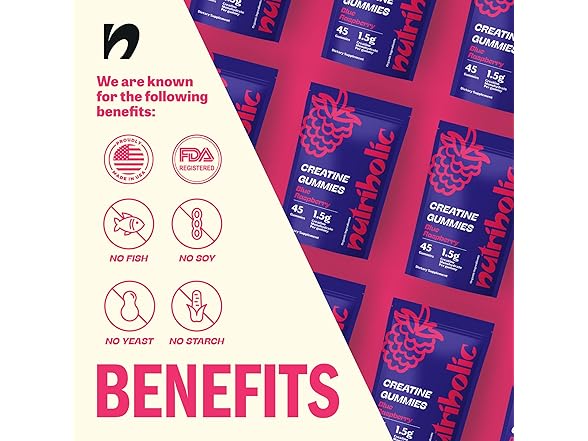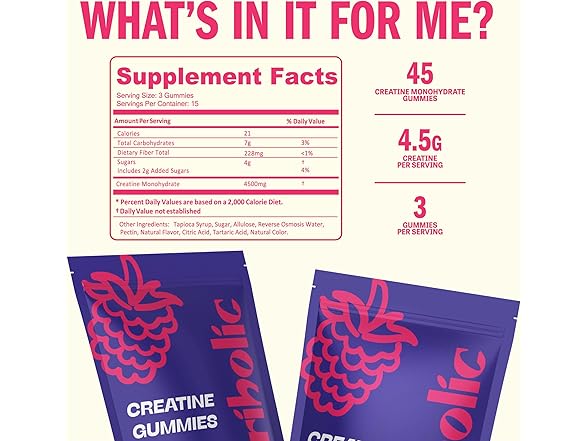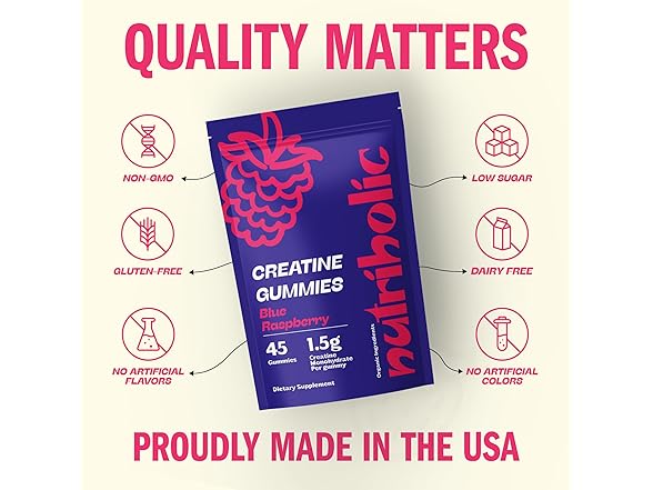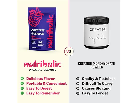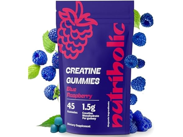 Nutriholic Creatine Monohydrate Gummies for Men and Women - Easy to Digest, Vegan, Gluten-Free, Non-GMO, 1.5g of Creatine per Gummy - 45ct (45 Count, Blue Raspberry)