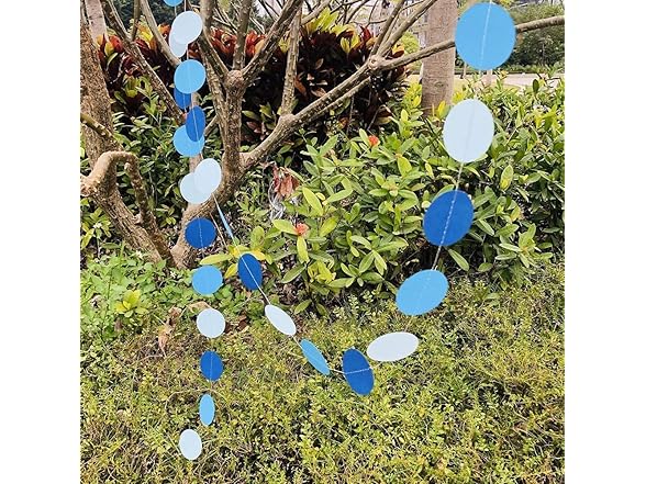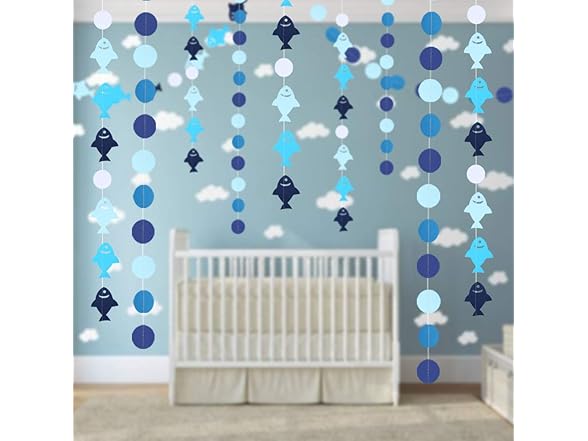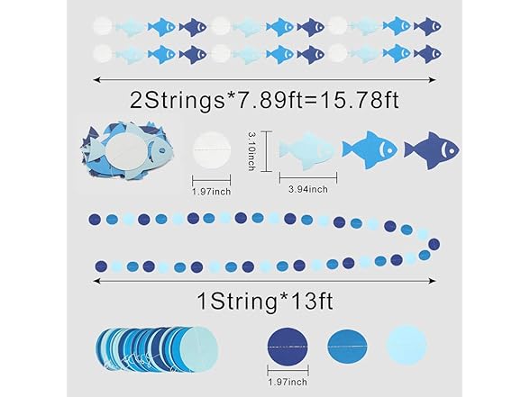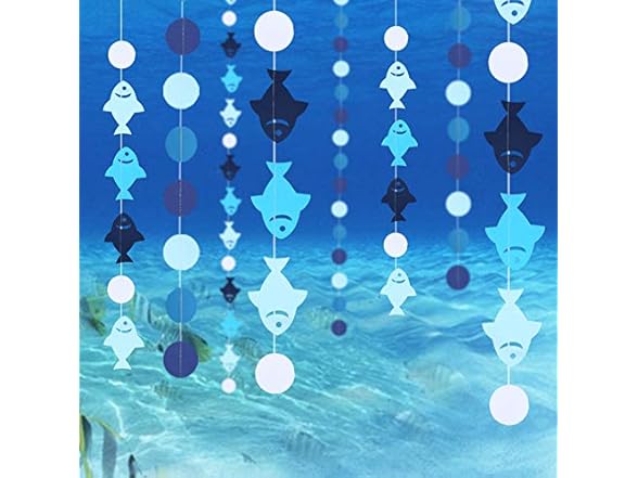 Ocean White Bubble Blue Fish Decorations for Party Under The Sea Kids Birthday Hanging Circle Dot Paper Garlands Backdrop for Mermaid Baby Shower Wall Fishing Net Decor Nursery Kids Room