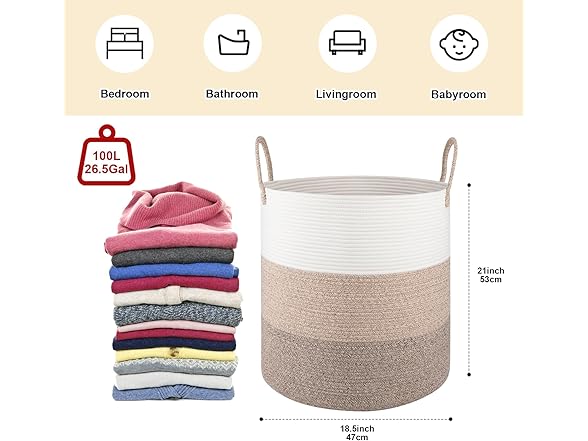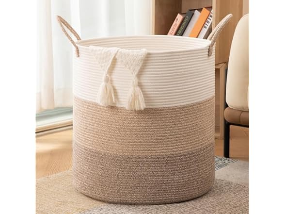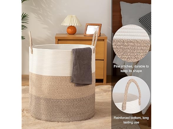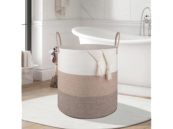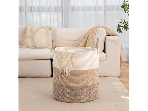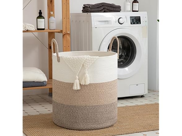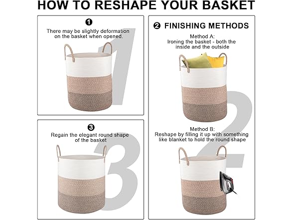 - Washable Woven Basket: This large basket can be washed by hand or machine with gentle detergent. If machine washed, please put them into a laundry bag. NOTE: These cotton rope baskets are folded when shipping, but it will turn back to its elegant shape quickly if you fill it with some towels or clothing, and iron is great idea to remove the creases