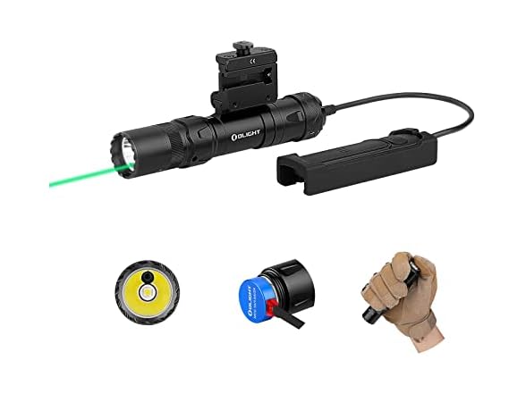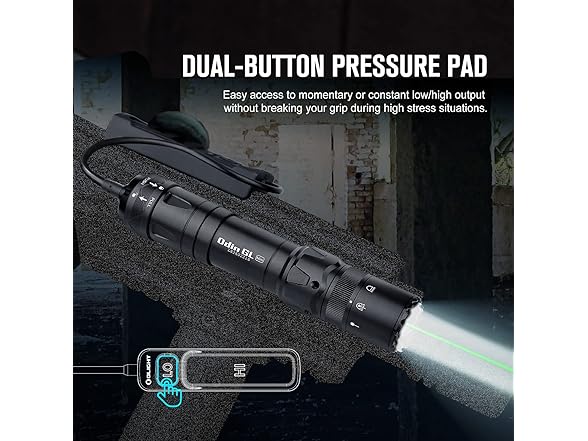OLIGHT Odin GL Mini 1000 Lumens Picatinny Rail Mounted Rechargeable Tactical Flashlight with Green Beam and White LED Combo, Removable Slide Rail Mount and Dual-Button Remote Pressure Switch (Black)