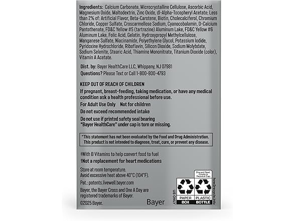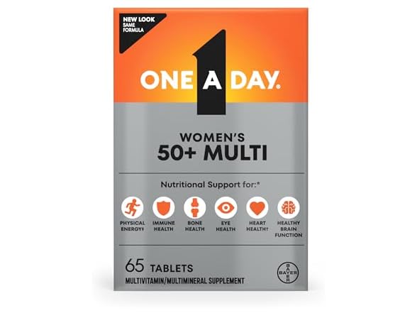 In the Box:- (1) One A Day Multivitamin for Women 50 and Over Tablets, Womens Multivitamin 50 plus with Vitamins D, C, E, Zinc & Biotin, Daily Vitamins for Woman 50+, 65 Ct