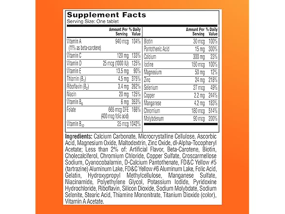 - Rich in essential nutrients: Our women over 50 multivitamins have at least 100% Daily Value of nutrients such as: Vitamins A, C, D, B6, B12, Zinc, Biotin & Folic Acid