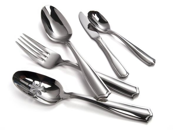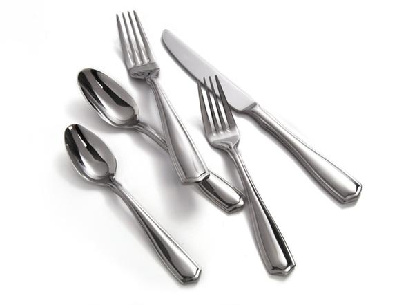 - Each place setting includes: salad fork, dinner fork, knife, soup spoon and beverage spoon