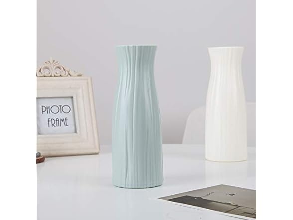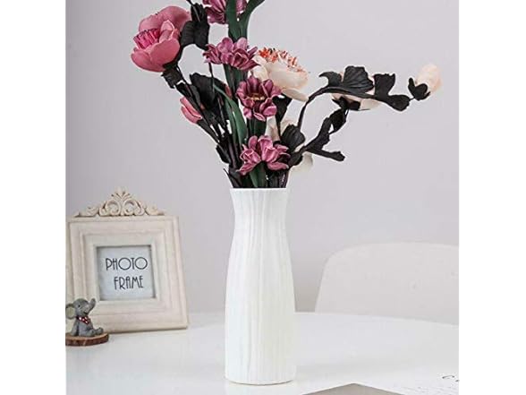 Ceramic Look Plastic Vase - Unbreakable Vase for Flowers (Narrow Seashell White)