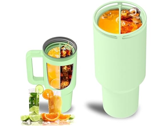 ORYCOOL Stanley Cup Accessories 40 OZ, Food Grade Silicone liner for 40 oz Stanley Cup, Silicone divided Beverage Container for 40 oz Stanley Cup, 2 Compartment Drink Cup with Handle(green), White