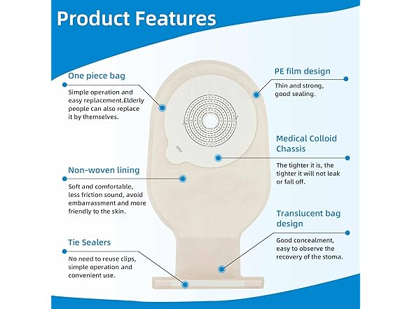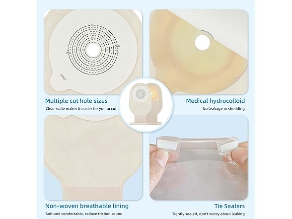 10 PCS Colostomy Bag,Ostomy Colostomy Supplies, One Piece Drainable Pouches with Twist-Tie for Ileostomy Stoma Care, Cut to Fit(Max 20-65mm)