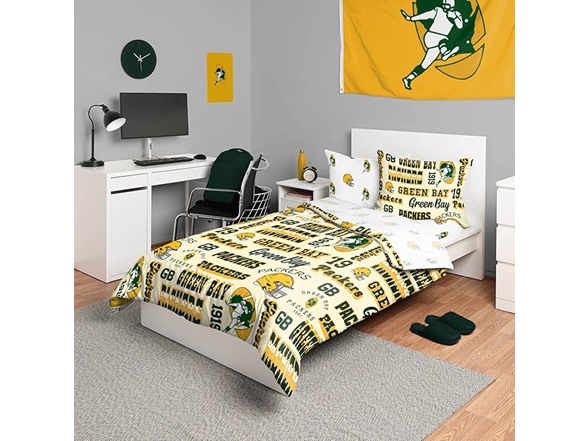 FOCO Green Bay Packers NFL Retro Bed in a Bag Comforter Bedding 5 Piece Full Set