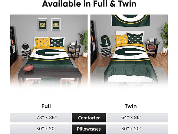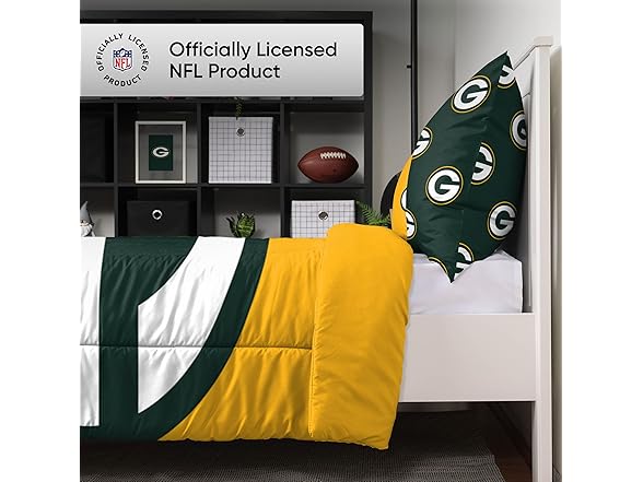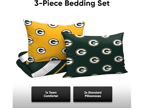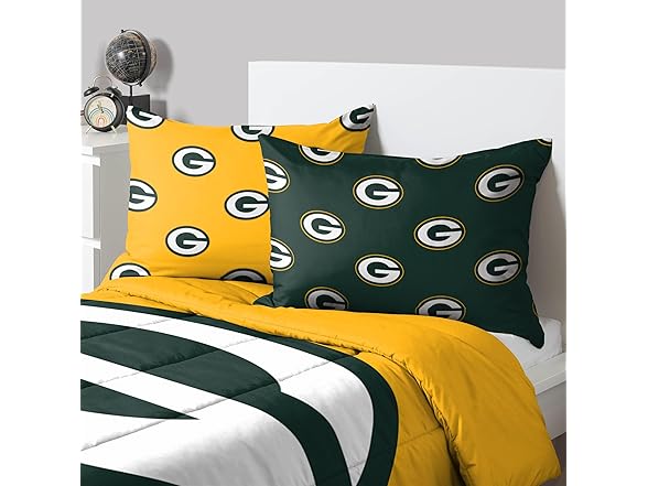 FOCO Green Bay Packers NFL Team Color Bed In a Bag Comforter Bedding 3 Piece Twin Set