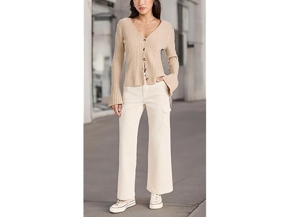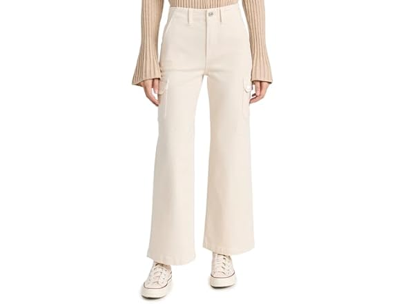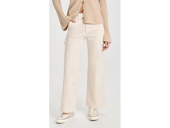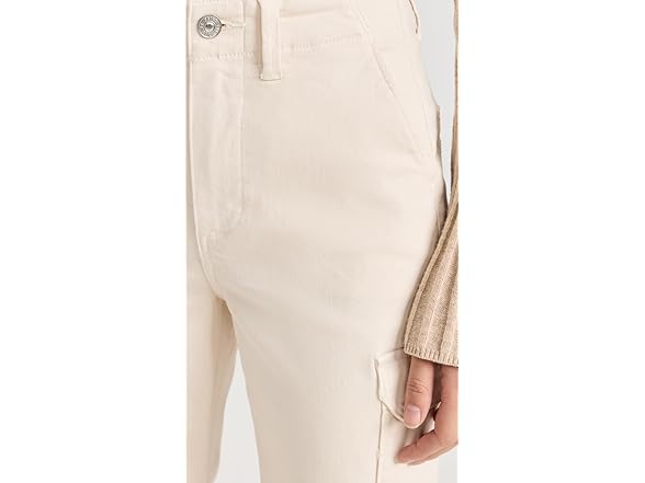 PAIGE Women's Carly Jeans with Cargo Pockets, Quartz Sand, Off White, 28