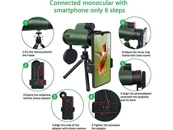 - đăEasy to Install and Use, Widely Compatible with SmartphoneăComes with quick alignment smartphone holder, tripods. Compatible with all kinds smartphone, including not limited to iPhone, Samsung, Sony, Google, LG, Motorola, HTC, etc. Easy to install, provide clear stable images to share with your family and friends.