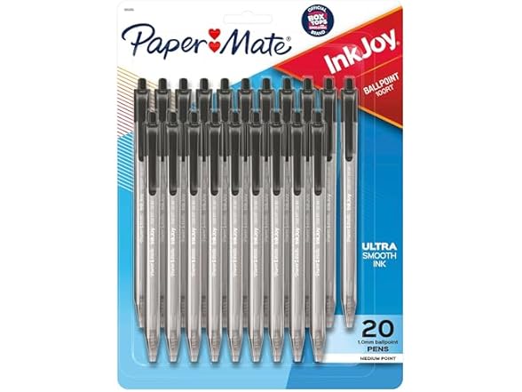 Paper Mate InkJoy 100RT Retractable Ballpoint Pens, Medium Point (1.0mm), Black, 20 Count