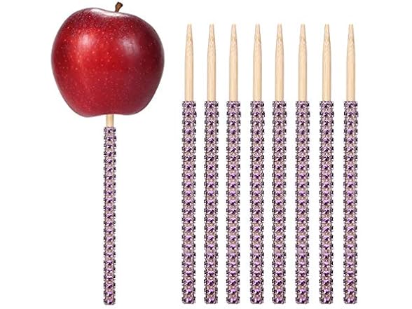 Quotidian Peach Glitter Rhinestone Bamboo Bling Sticks 6" (15cm) Pack of 24 - Candy Apple Cake pop Caramel
