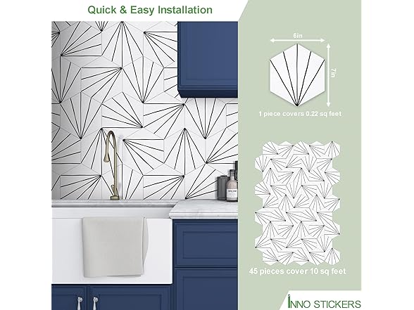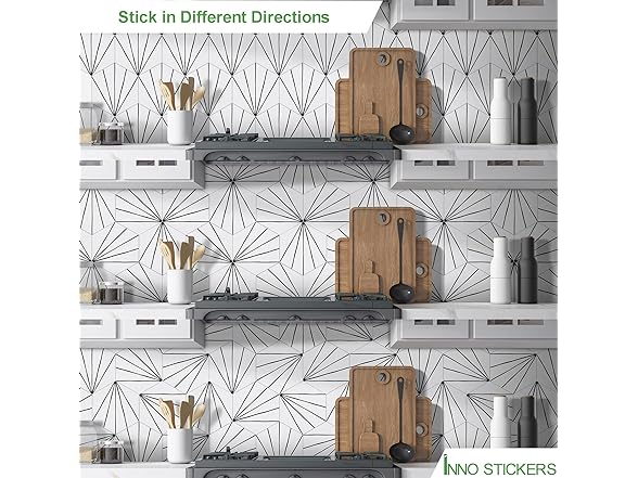 - DESIGN INSPIRATION: INNO STICKERS peel and stick tiles offer a perfect blend of soft colors and mesmerizing repeating rays, effortlessly infusing your home with an elegant and simple geometric beauty. Drawing inspiration from the iconic Art Deco movement, these tiles bring a touch of timeless style to any space.