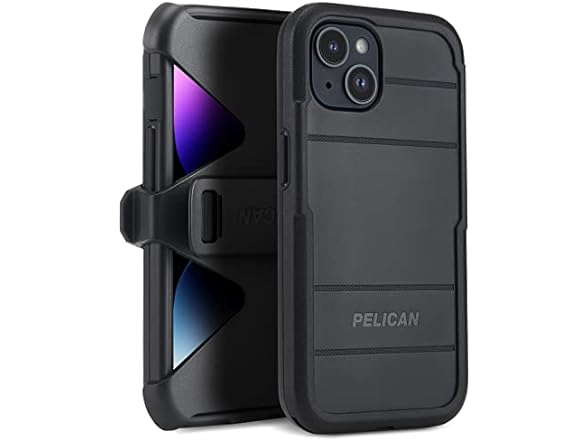 Pelican Voyager Series - iPhone 14 Case / iPhone 13 Case 6.1" [Compatible with MagSafe] Magnetic Phone Case with Belt Clip Holster Kickstand [18ft Military Grade Drop Protection] - Black