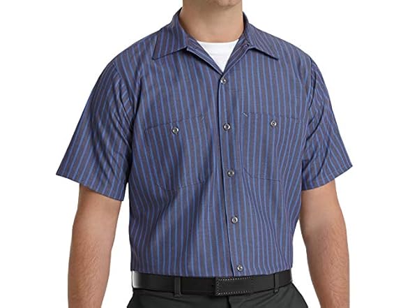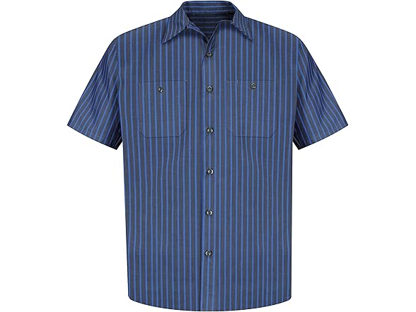 Red Kap mens Regular Fit Short Sleeve Pencil Hutch Work Utility Button Down Shirt, Grey/Blue Stripe, Medium US