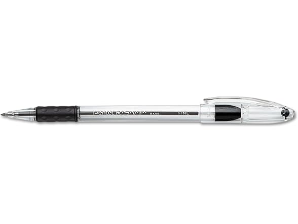 Pentel BK90A R.S.V.P. Stick Ballpoint Pen, 7mm, Trans Barrel, Black Ink, Dozen