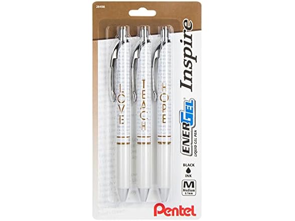 Pentel EnerGel Inspire Love/Teach/Hope, (0.7mm) Medium Line, Black Ink, Pack of 3 (BL77INSPBP3M1)
