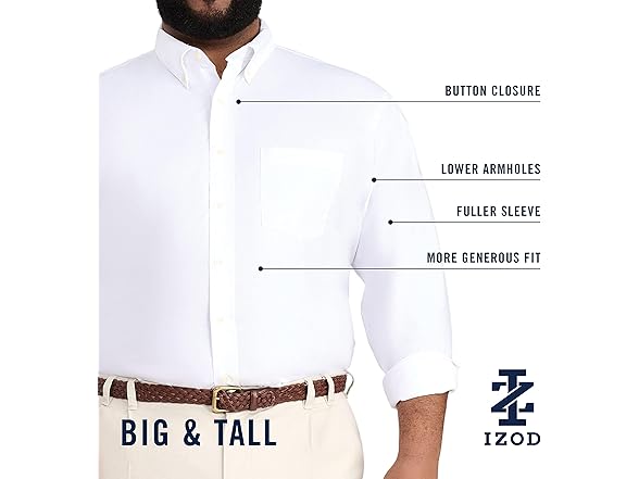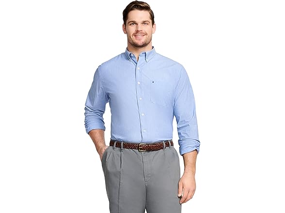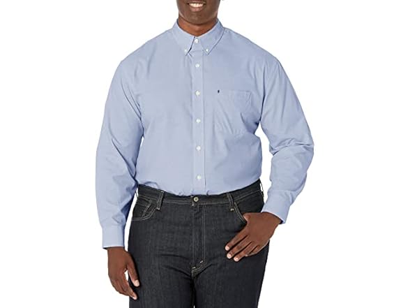 IZOD Men's Performance Comfort Long sleeve Solid Button Down Shirt, Mazarine Blue Bt, Large Tall
