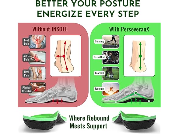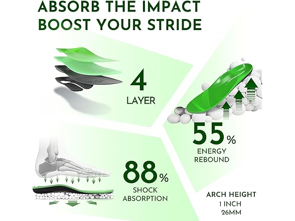 - Energizing Cushioning for a Spring in Every Step: Engineered for ultimate comfort, these premium shoe inserts for plantar fasciitis women are USA-crafted and these mens shoe inserts & insoles deliver superior shock absorption with every step, reducing flat feet discomfort, leg fatigue, and lower back pain.