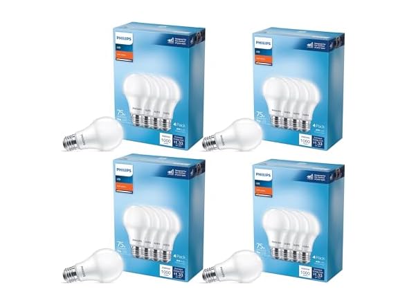 PHILIPS 75-Watt Equivalent A19 Non-Dimmable E26 LED Light Bulb Soft White 2700K 16-Pack