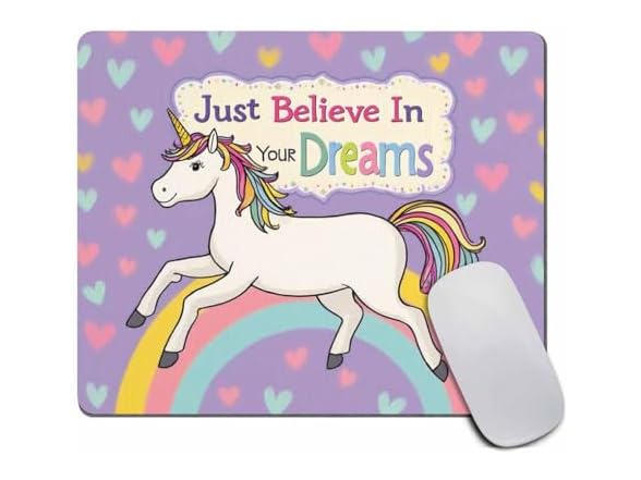 Gaming Mouse Pad Custom, Teen Cute Mouse pad, Unicorn Figure with Believe in Your Dreams Inspiring Quote Mouse pad
