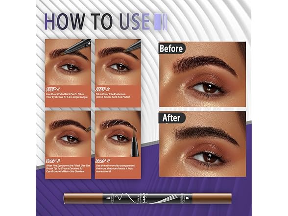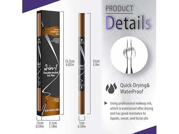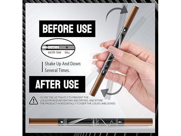 - 【Convenient & Portable】Designed for on-the-go use, our Dual-Ended Eyebrow Pen is compact and space-saving, making it easy to carry in your pocket, purse, or makeup bag. Whenever you need a quick touch-up, simply take it out and shape flawless brows in no time. Be sure to close the cap tightly after use to prevent it from drying out too quickly.
