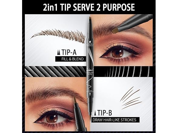 - 【Dual-Ended Eyebrow Pen】This Microblading Eyebrow Pen features a unique dual micro-fork tip on one side, making it easy to fill in gaps and create natural, hair-like strokes. On the other end, a silky eyeliner pen glides effortlessly, allowing for sharp definition, precise lines, and a bold, smoky effect. Ideal for women looking to personalize their eyebrow and eyeliner looks.