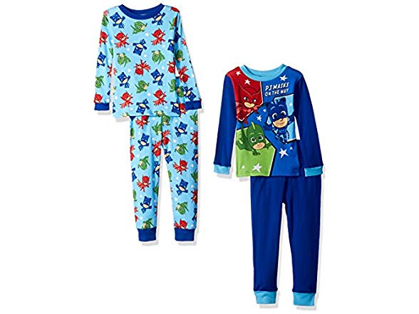 PJ Masks Boys' Toddler Bedtime Heroes 4-Piece Cotton Pajama Set, Blues, 2T
