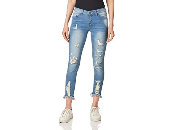 COVER GIRL Women's Size High Waisted Cute Ripped Patched Repair Blue Skinny Juniors, Torn Apart, 18 Plus