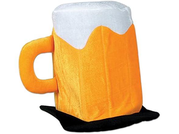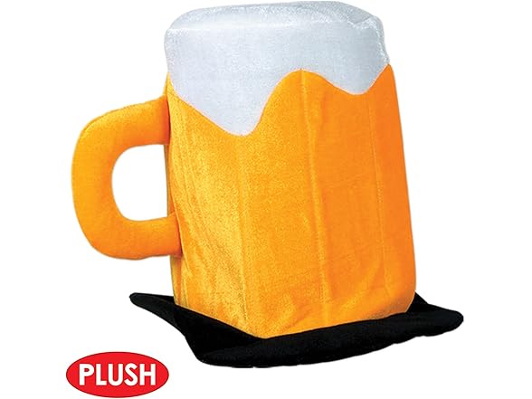 - HILARIOUS BEER MUG DESIGN: Stand out at any celebration with this plush foam hat designed to look like a frothy beer mug, complete with a shiny golden “glass,” white foam top, and side handle for authentic beer-inspired style that brings instant laughs and party spirit
