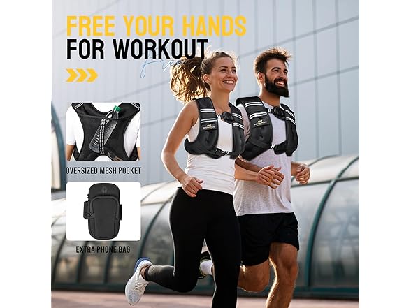 - Safe, Practical & Easy to Use: The weight vest women features reflective strips on the front and back keep you visible during late-night runs or evening workouts. The removable phone pocket and deep mesh back pocket securely store your essentials—phone, headphones, wallet, keys, and towel—so everything is within reach. Whether running outdoors or at the gym, the smart pocket design lets you focus on your training without distractions