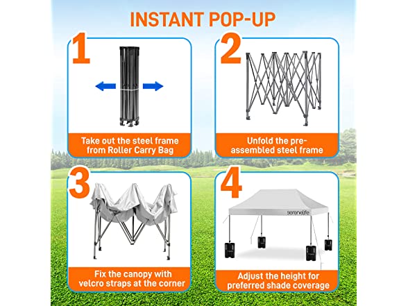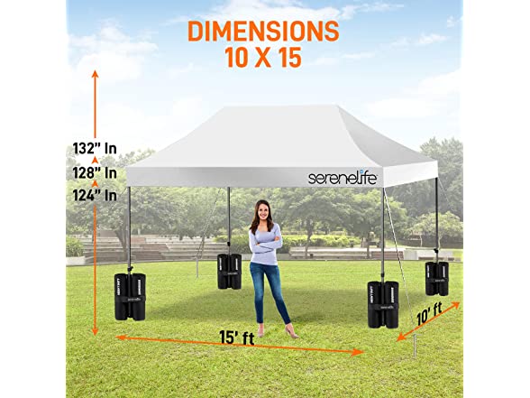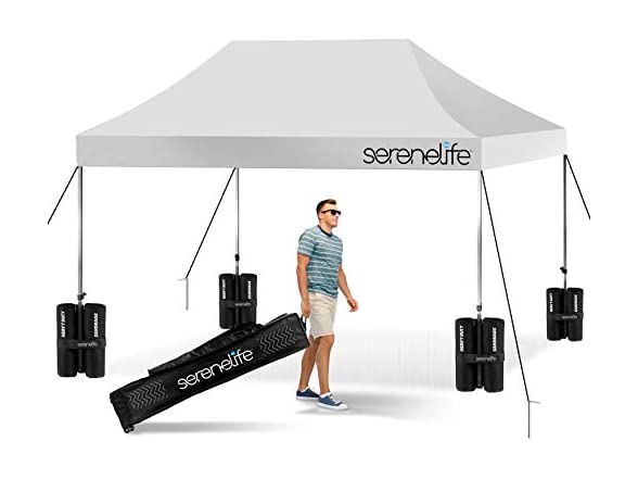 Pop Up Canopy Tent 10x15 - Commercial Instant Shelter Foldable/Collapsible Sun Shade Canopy Pop Up Tent w/ Waterproof UV Resistant Tent Top, Portable Carry Bag & Sand Bag - SereneLife SLGZ15W (White)