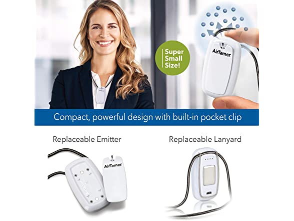 - GREAT FOR TRAVEL: The AirTamer A315W is the perfect travel accessory for those who love to explore without exposure to unsanitary air; The A315W's SMALL POWERFUL design includes a built-in pocket clip and patented conductive REPLACEABLE lanyard which is adjustable and features a break-away connector for extra safety; Wear it around your neck or clip it on your jacket and have a sphere of breathable clean air anywhere you go