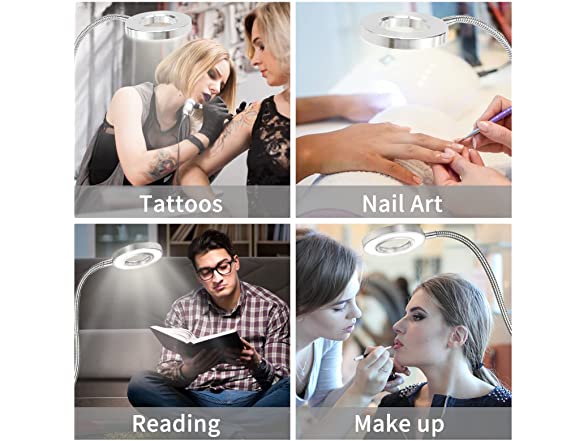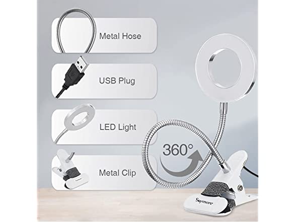 - ❤ 360° FLEXIBLE GOOSENECK DESIGN and NON-SLIP CLIP : Durable flexible gooseneck allows you to easily adjust the clip-on light. Metal stable and durable clamp can clip on something, also stand alone on desk. The clip with the foam pad will protect your furniture from scratch. our desk lamp use super bright Led Bulbs, which is 7W that can bring enough light that suitable for you.It is the Best for bedroom, reading, working, studying, nail, tattoo, eyebrow make up.