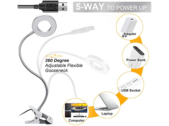 - ❤ USB POWERED(ADAPTER NOT INCLUDE): Portable and USB plug design is easily get power, such as laptop/desktop/power bank/USB adapter. Our reading light has 24 LED beads, with Long Service Life, High Light Efficiency, Good Heat Dissipation And Low Light Failure.