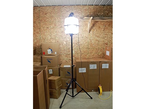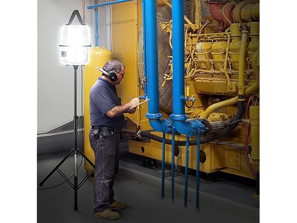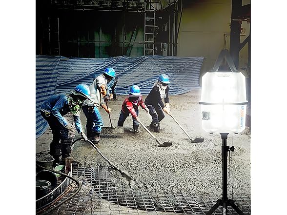 Portable LED Work Light 20,000 Lumens, Professional Lighting Dispersed in 360 Degrees, Weather Resistant Durable Indoor Outdoor Use with Telescoping Tripod Stand