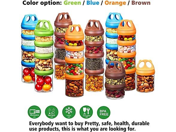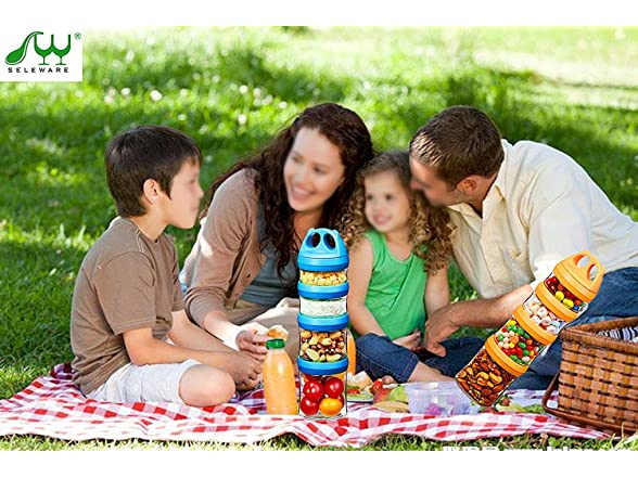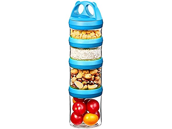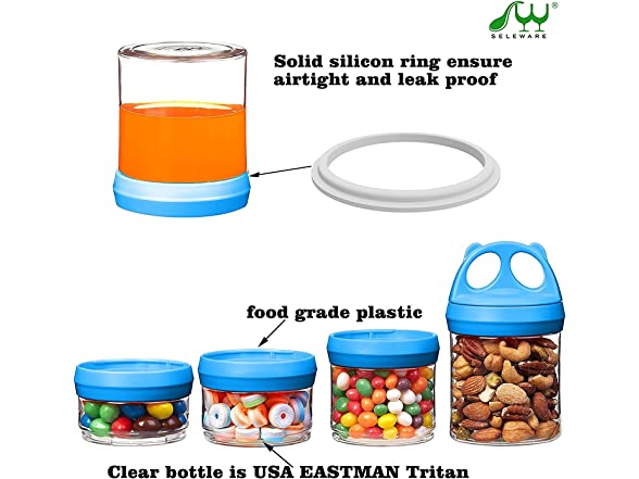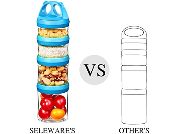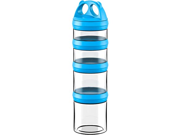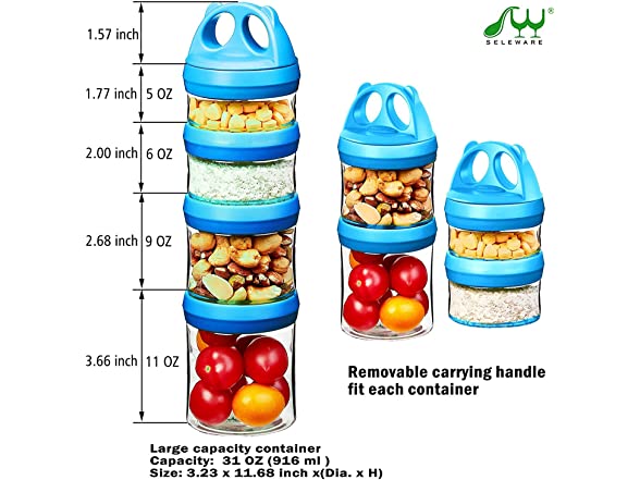 SELEWARE Portable Stackable Food Storage Containers for Snacks Formula Powder and Drinks Twist Lock System Airtight Leak-proof BPA and Phthalate Free 4 Piece Jars 31oz Blue