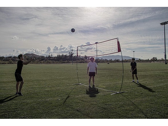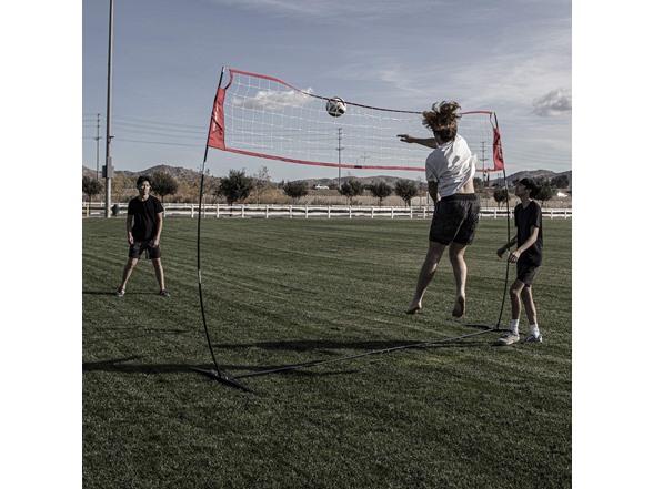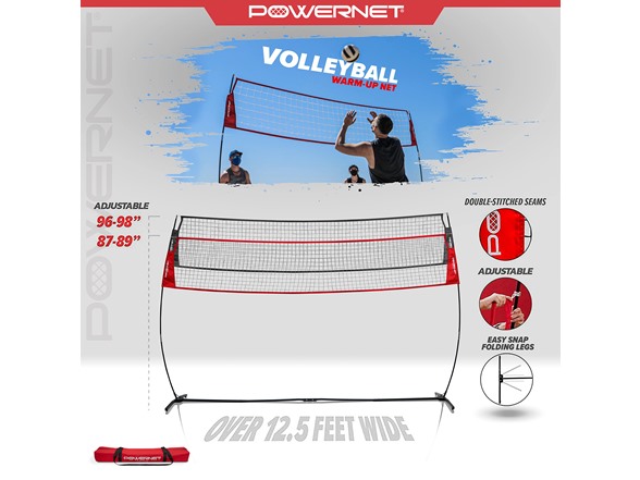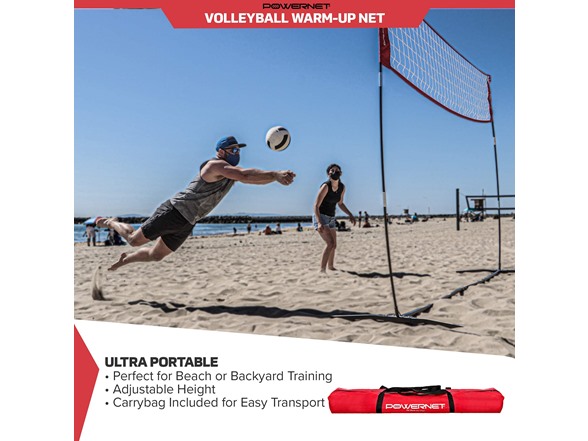 - FREESTANDING VOLLEYBALL NET; No sandbags or weights required; The PowerNet Volleyball Warm Up Net can be set up on the driveway in the yard beach park or anywhere you want to play