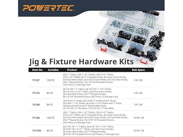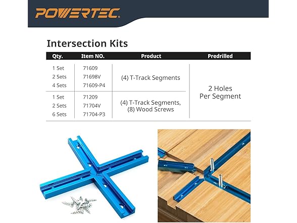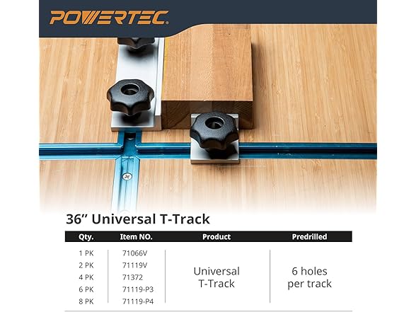 Introducing the Universal T-tracks by POWERTEC. This versatile set of T-tracks was designed to help provide you with a limitless amount worktable configurations, while optimizing your jigs, fixtures and workbenches. It features a unique double-cut profile with an inside Groove that accepts standard 1/4 inch hex bolts, 1/4 inch T bolts and 5/16 inch T bolts. This makes it more cost effective and easier for you to maximize both, your new and previously owned hardware. Made out of extruded anodized aluminum, these commonly used woodworking accessories are build to last with outstanding durability and corrosion resistance. Easy to use our universal T-tracks can either be embedded in a workstation board itself, or simply attached onto the tabletop. Easy to install each track is equipped with pre-drilled mounting holes for simple installation (screws not included). Easy choice to make these universal designed T-tracks are the ideal tool for anyone building or tailoring machine tables, jigs and fixtures. Whether you’re a professional or DIY enthusiast, you’ll find these to be the perfect workstation enhancing accessory. POWERTEC is a leading manufacturer of high quality woodworking tools and accessories, machines, and an assortment of OEM replacement parts. We are committed to exceeding expectations, while bringing the latest innovations, technology, and product development to the industry.