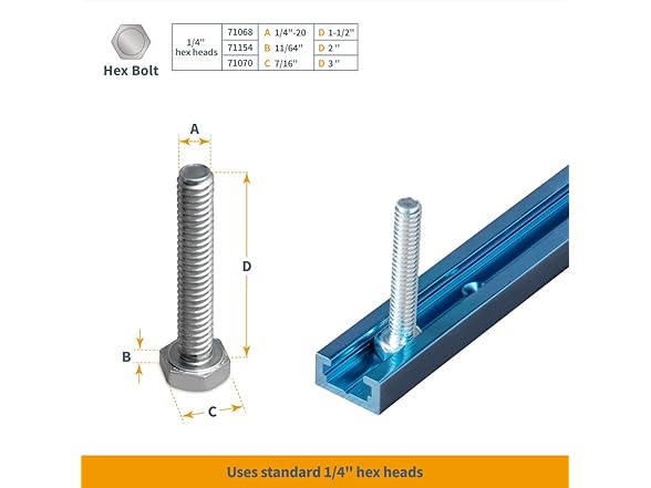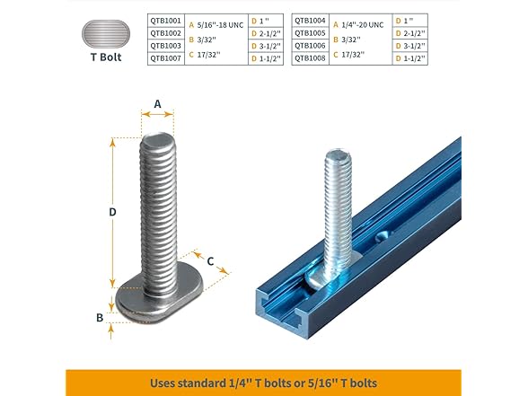 - Versatile design: Universal T track designed to accommodate 5/16” and 1/4” t-bolts, and 1/4” hex bolts