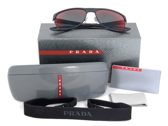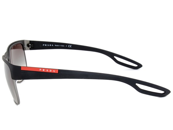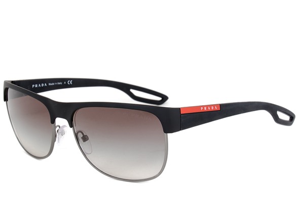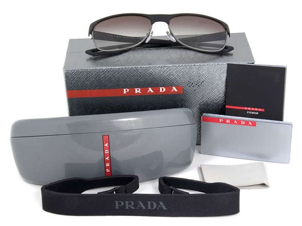 Showing off an impeccably progressive design, these Prada PS57QS Sunglasses have a rubberized upper frame while the soft rectangular gradient lenses are encircled with a light frame. Paddle arms with prominent cutouts on the ear tips and branding on the temples provide a desirable look for this model. Measuring 58-16-140mm, this item ships with its own case, lens cleaning cloth, and manufacturers documents.