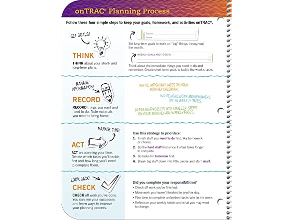 onTRAC Planning System which teaches students how to Think, Record, Act and Check for planning and time-management success